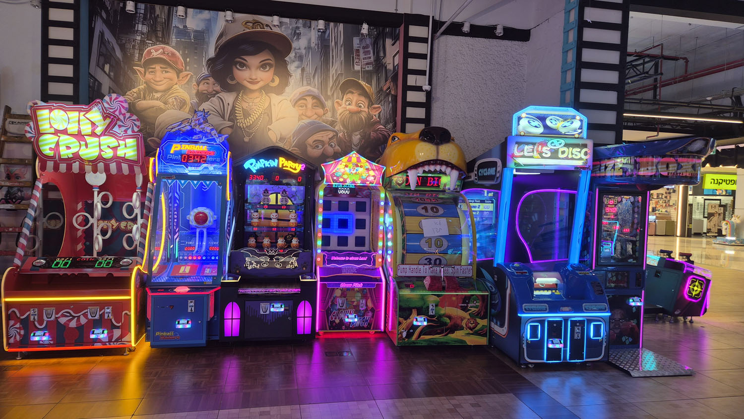 המתחם הינו מעל 1200 מ'ר של משחקים יש מעל 70 מכונות מטורפות לכל הגילאים.